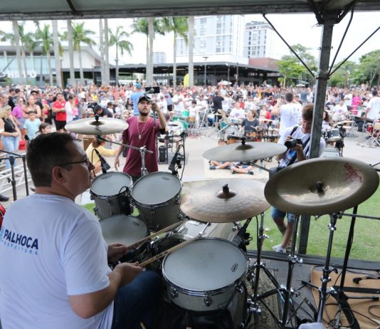 A segunda edição do Palhoça Drum Fest reuniu uma centena de bateristas e um ótimo público na Praça do Espelho D’Água, na Pedra Branca no dia de ontem e o evento integrou as comemorações pelos 128 anos de emancipação política do município.