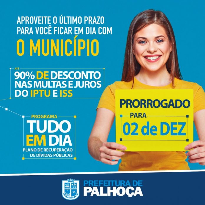 Como forma de facilitar aos contribuintes de Palhoça, com débitos em relação aos tributos, a prefeitura Municipal decidiu prorrogar até o dia 2 de dezembro a validade do programa “Tudo em Dia”.