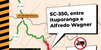 ALFREDO WAGNER À ITUPORANGA: RODOVIA ESTÁ INTERDITADA PARA TRÁFEGO DE VEÍCULOS...