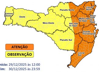 ÚLTIMA SEMANA DE 2025 COMEÇA COM ALERTA PARA TEMPORAIS EM SANTA CATARINA