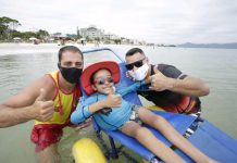 PROGRAMA “DAX UM BANHO”: FLORIANÓPOLIS OFERECE BANHOS DE MAR PARA CADEIRANTES E OUTROS DEFICIENTES