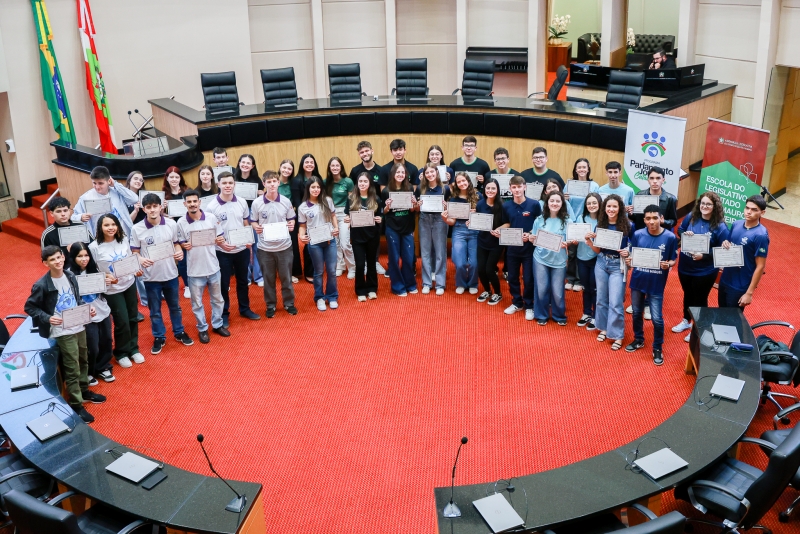 Na cerimônia de posse, o presidente da Escola do Legislativo, Alexandre Lencina Fagundes, destacou que os 40 jovens — 22 meninas e 18 meninos — representam diferentes regiões e compõem “o espectro de uma sociedade plural, base do processo democrático”.